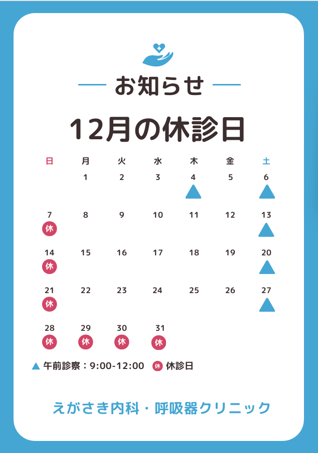 年末年始は12月28日~1月4日を休診とさせていただきます。